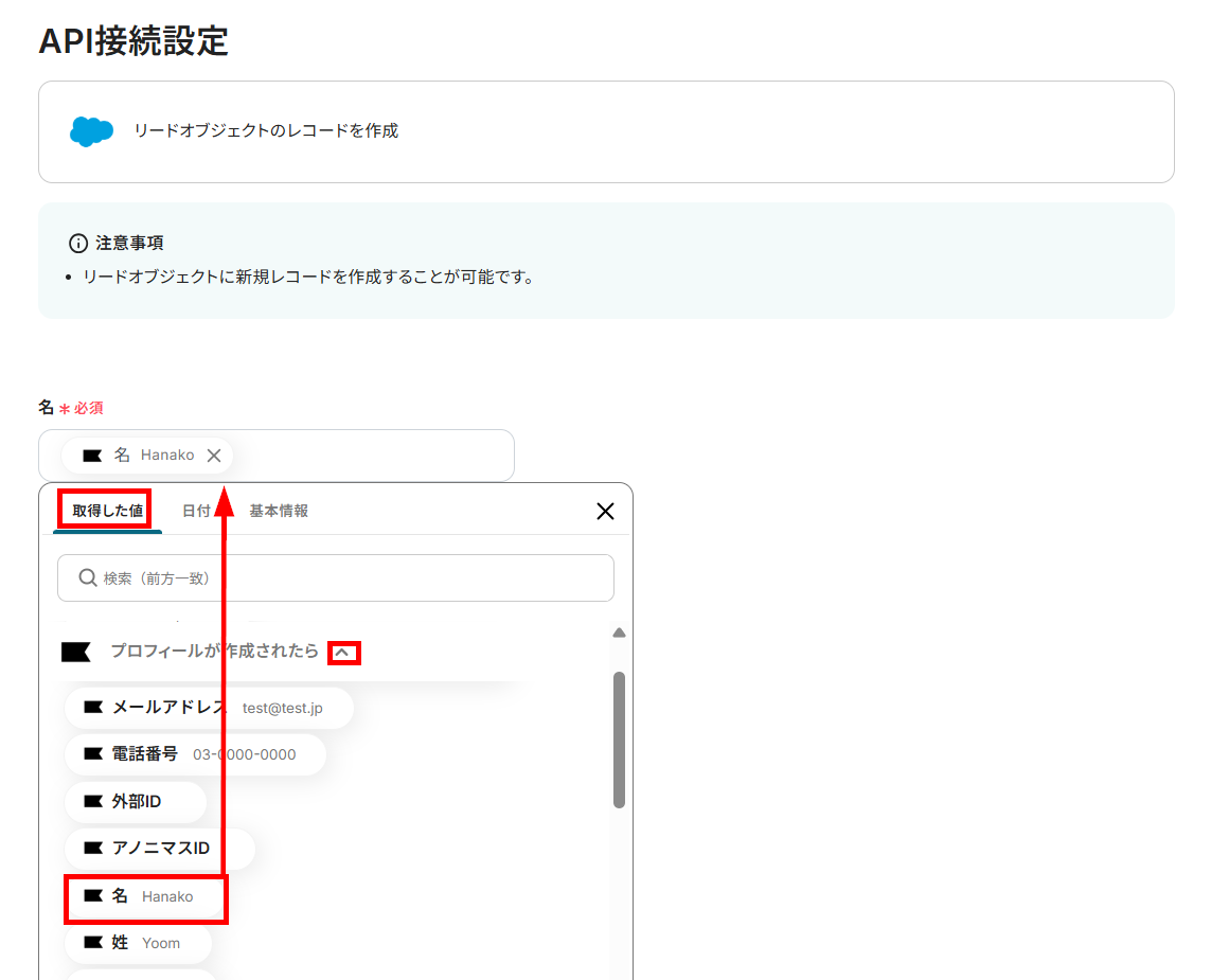 これにより、プロフィールごとに変わる値をSalesforceへ動的に反映できます。