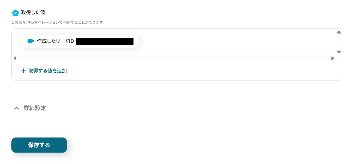 リードが作成されたことを確認したら、Yoomに戻り設定を保存します。