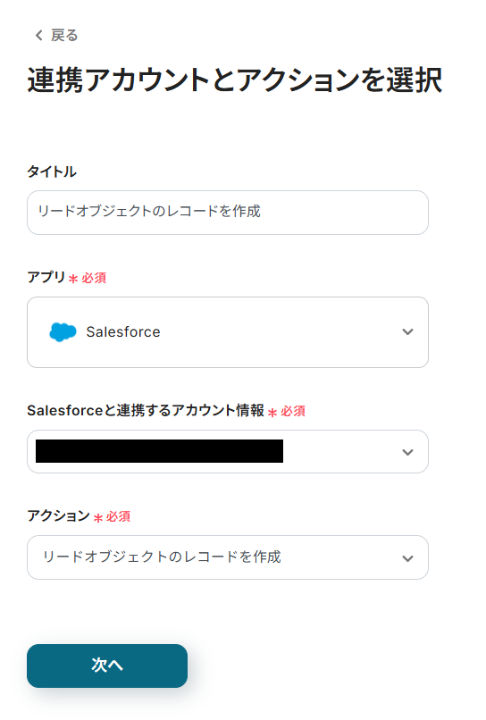 ステップ4:Salesforceのリードオブジェクトにレコードを作成する設定