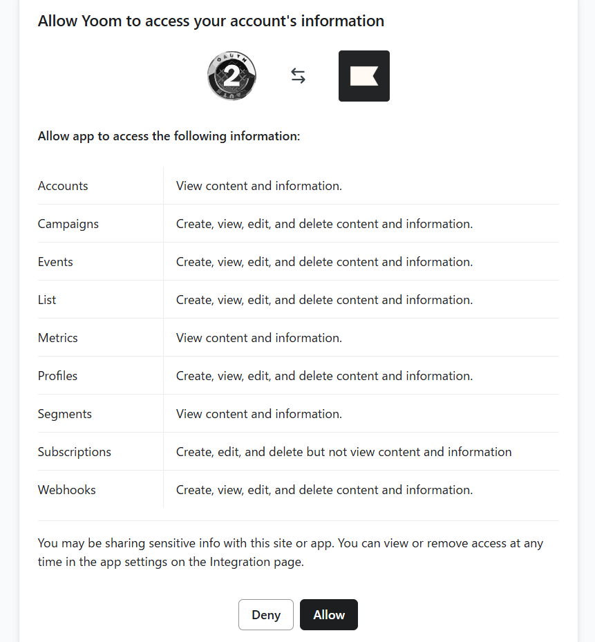 内容を確認し、「Allow」をクリックすると登録完了です。