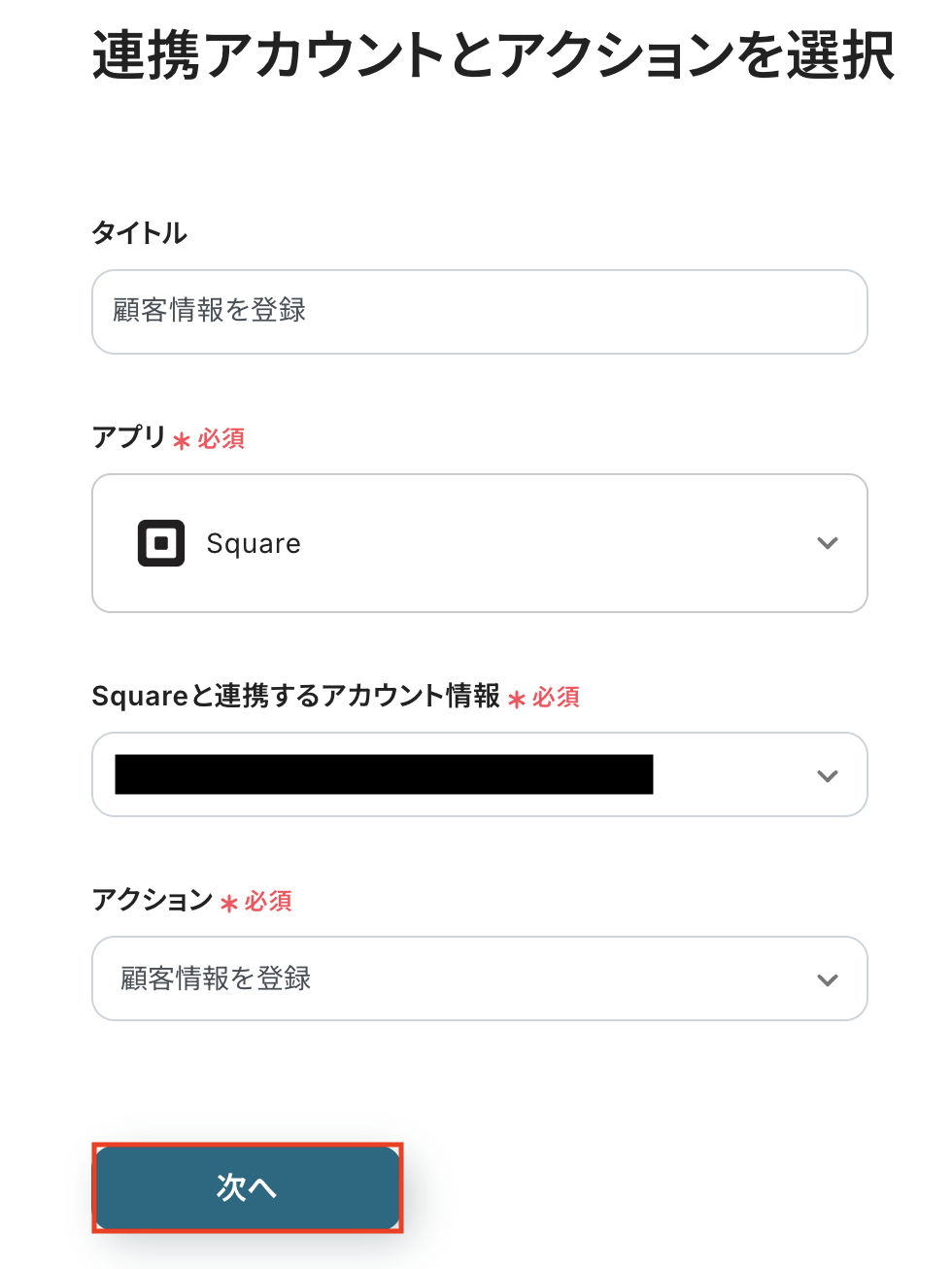 ステップ4: Squareのアクション設定