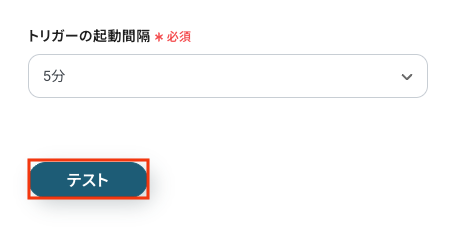 入力が完了したら、設定内容とトリガーの動作を確認するため「テスト」をクリックします。