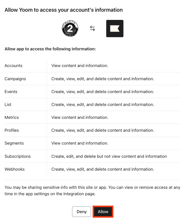 以下の画面が表示されたら、内容を確認し「Allow」をクリックします。