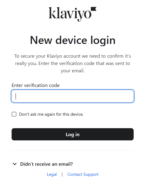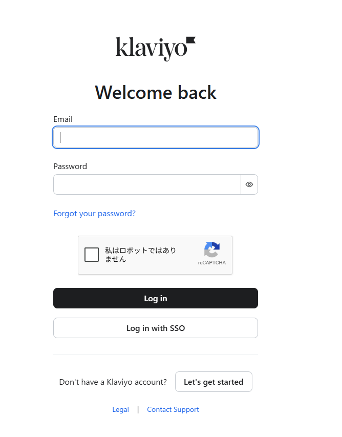 【Klaviyoのマイアプリ登録】 Klaviyoの連携アカウントを追加をクリックすると以下のようなログイン画面に遷移します。連携したいアカウント情報を入力してログインしてください。