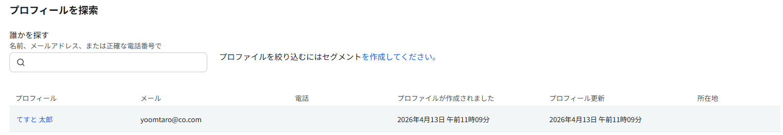 これで、フローの設定作業は終了です。 実際にKlaviyoにプロフィールが作成できているか確認します。 無事作成できていました!
