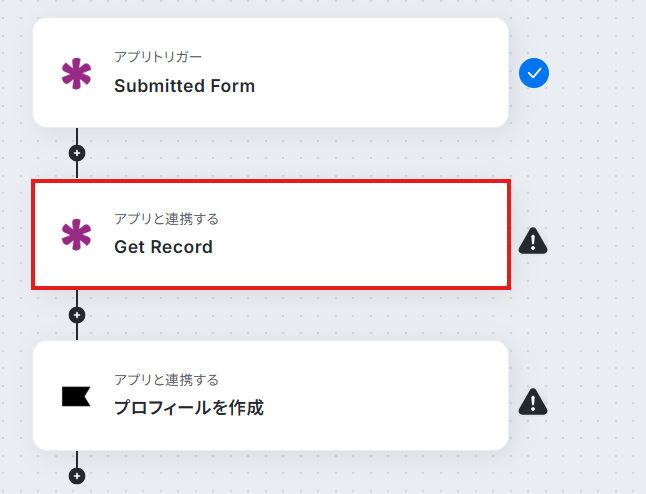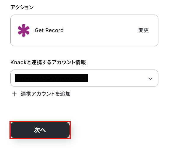 ステップ4:KnackのRecordを取得する設定 次にKnackでRecordを取得するアクションを設定していきます。