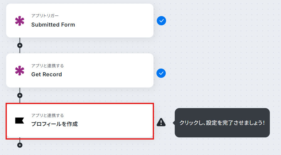 フローに戻り、「プロフィールを作成」をクリックしてください。