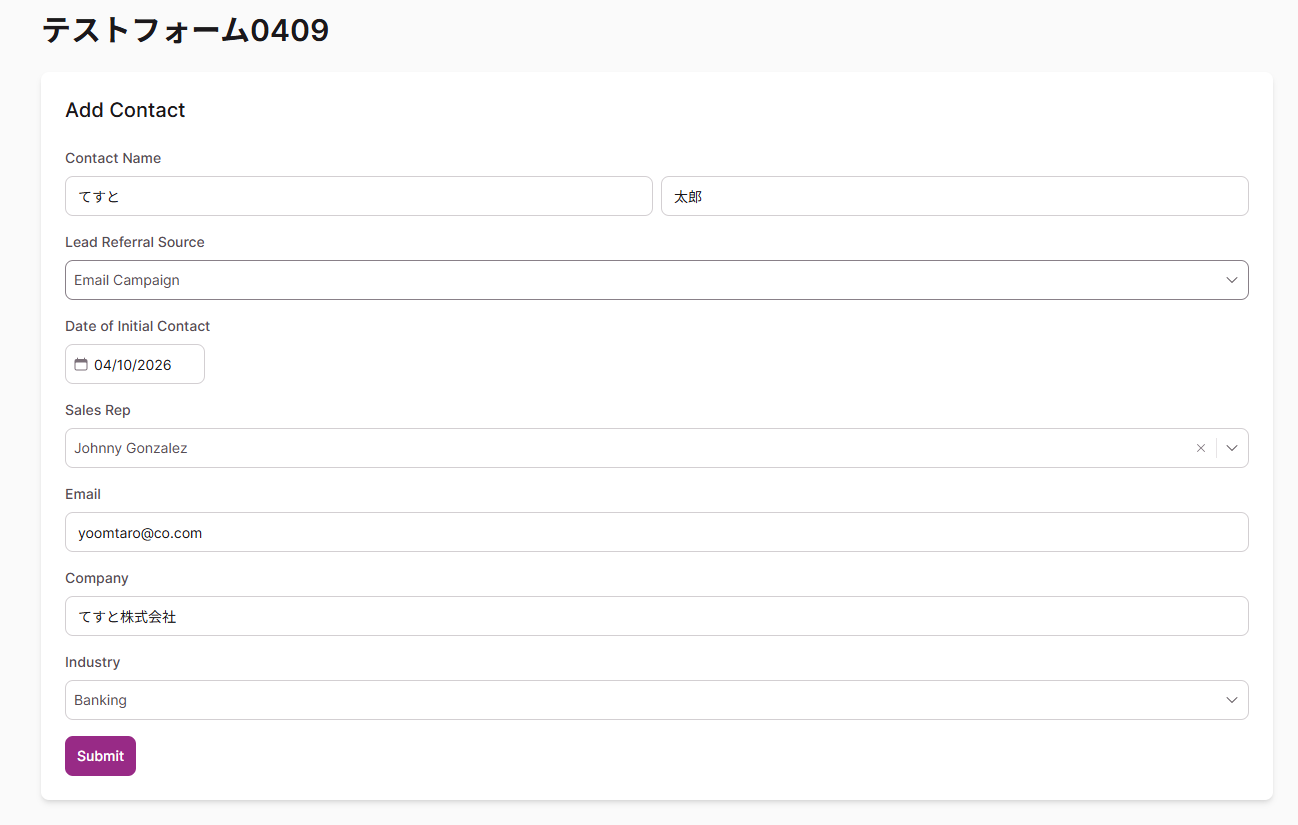 登録が完了したら、Webhookイベントを実行します。 今回は実際にKnackのフォームから以下のようにテスト送信を行いました。