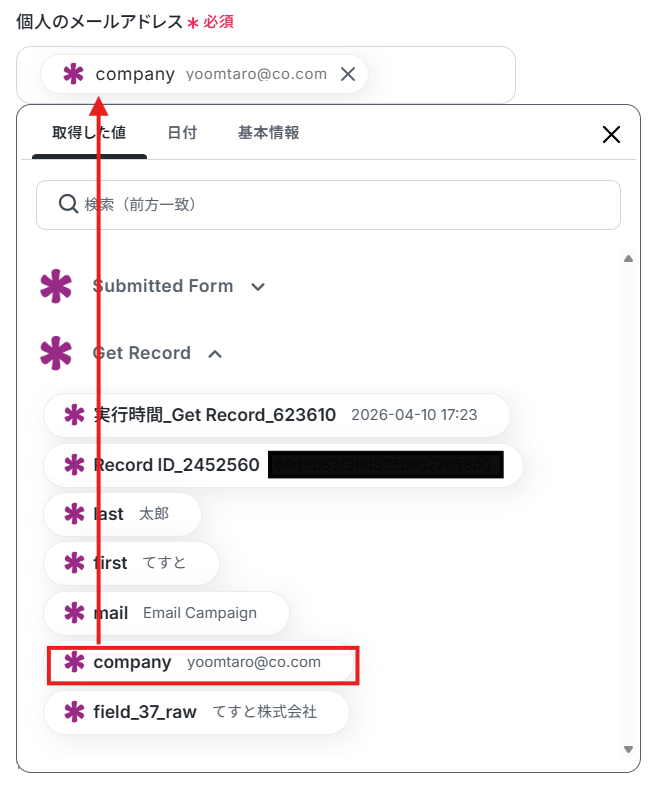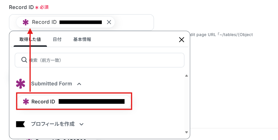 Record IDは、以下のように取得した値から設定します。