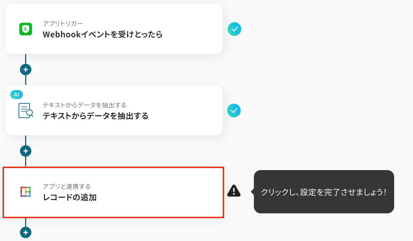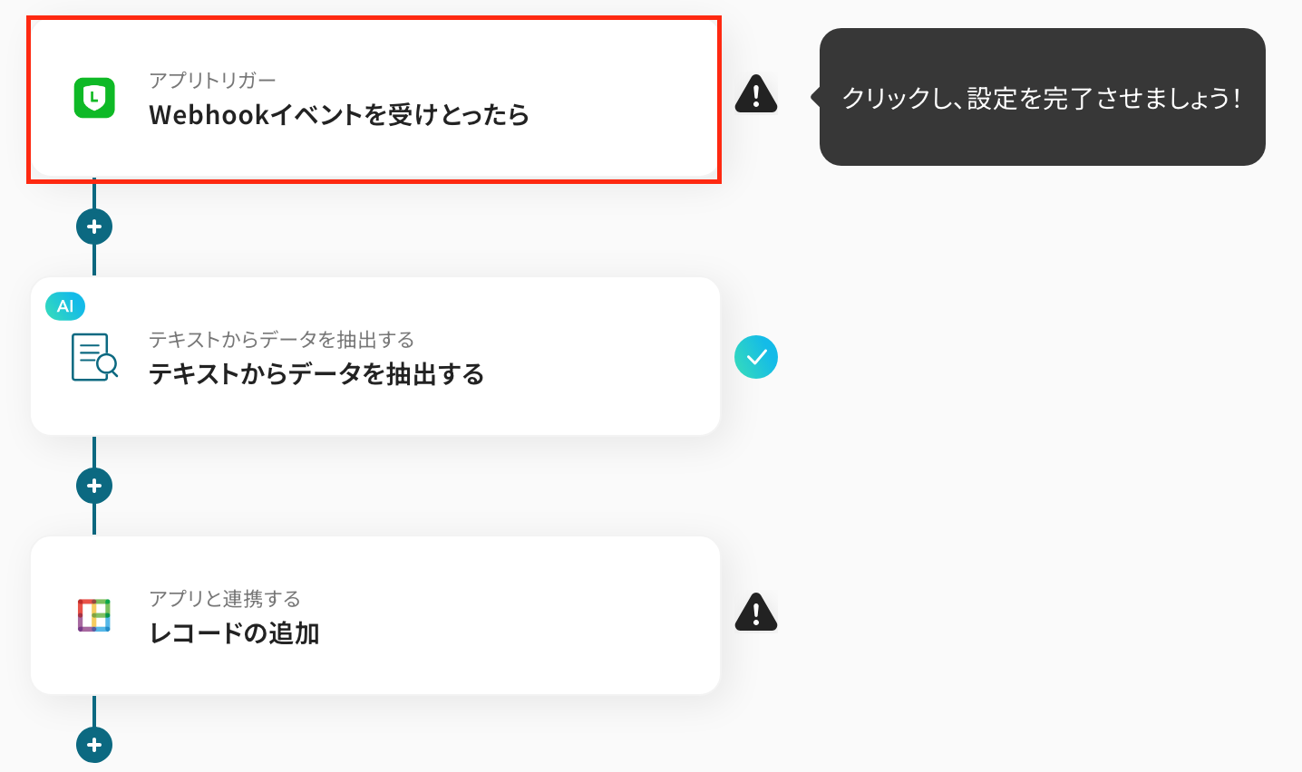 ここからは、「LINE公式アカウントからメッセージが送信されたら、Canbus.にレコードを追加する」フローを設定していきます!