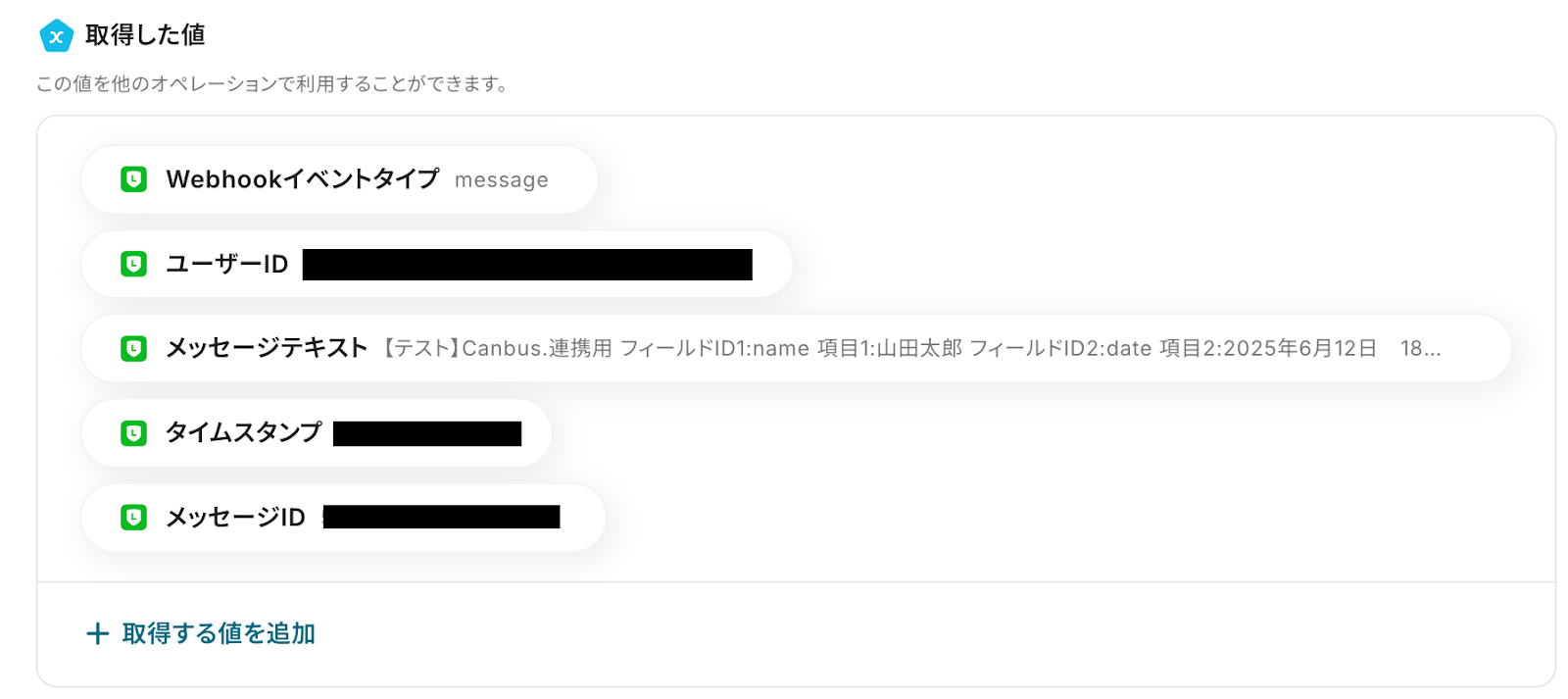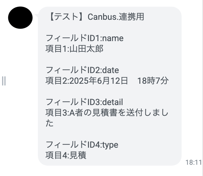 LINE公式アカウントから特定のメッセージが送信されたら、Canbus.にレコードを追加する