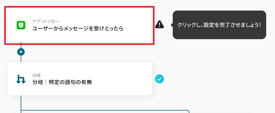 Webhookの設定ができたら、アプリトリガーを動かすために「ユーザーからメッセージを受け取ったら」という条件をクリアしましょう。