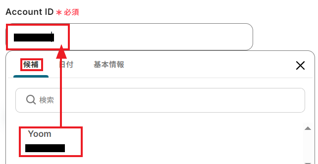 - Dripへの登録アクションでは、対象のアカウントIDやキャンペーンIDを任意に指定できます。また、登録するメールアドレスやカスタムフィールドなどの各項目に、前のステップで取得した値を設定することが可能です