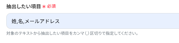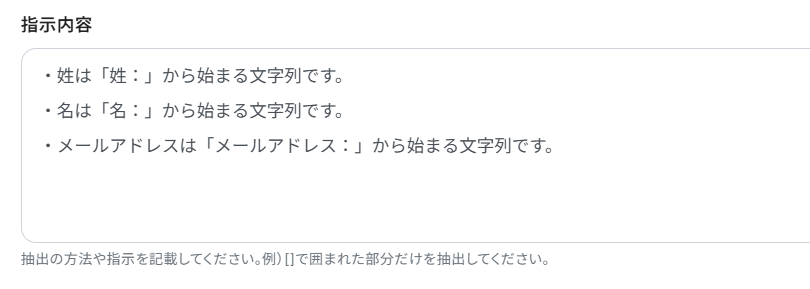 - AIのテキスト抽出では、メッセージ本文からメールアドレスや名前など、Dripへの登録に利用したい情報を任意で抽出するよう設定できます