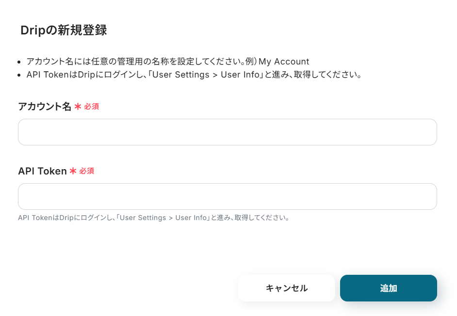 これにより、手動でのデータ入力作業を減らし、リード情報を迅速かつ正確にDripへ登録できるため、マーケティング活動の初動を早められるでしょう。