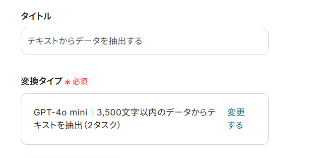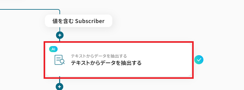 - 次に、AI機能の「テキストからデータを抽出する」アクションを設定し、メッセージ本文からメールアドレスなどの登録に必要な情報を抽出します