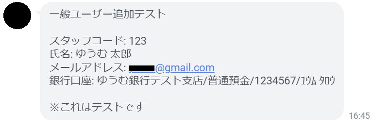次にテスト用のユーザー情報を連携したLINE公式アカウントにメッセージを送ってください。