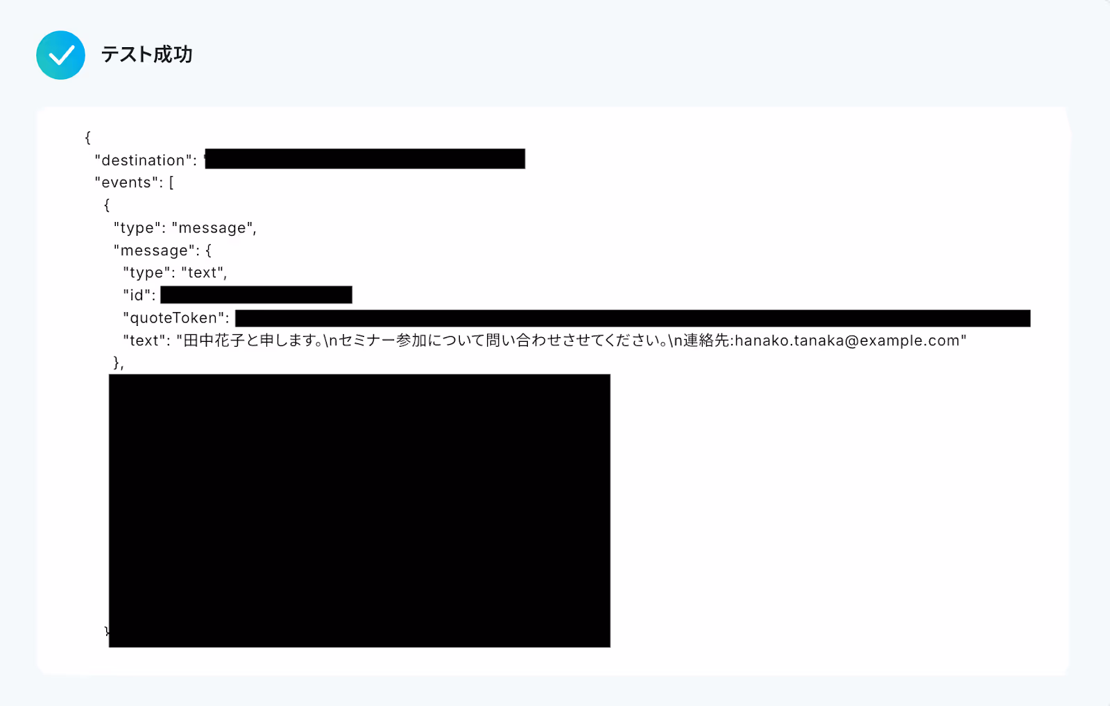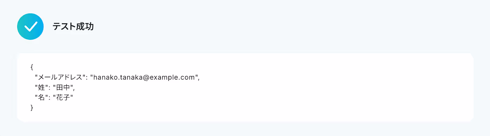 テストに成功すると、以下の通りテキストから抽出された情報が表示されます。