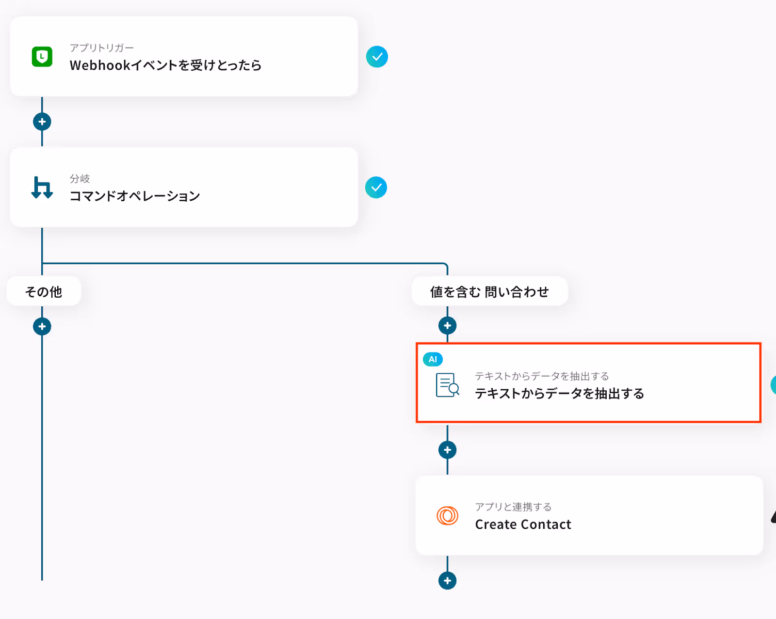 トリガーイベントにて受信したメッセージ内容を対象に、AIで特定のテキストを抽出します。