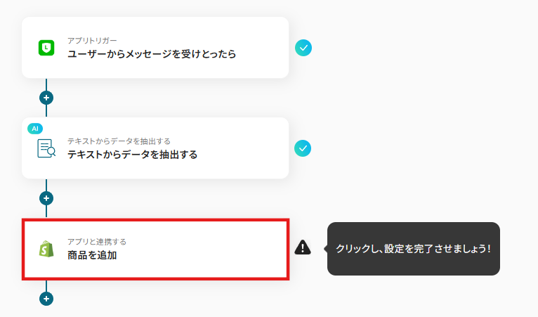 今回は「LINEでメッセージがあったら、Shopifyに商品情報を追加する」フローを作成していきます!
