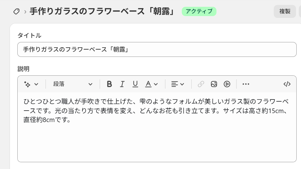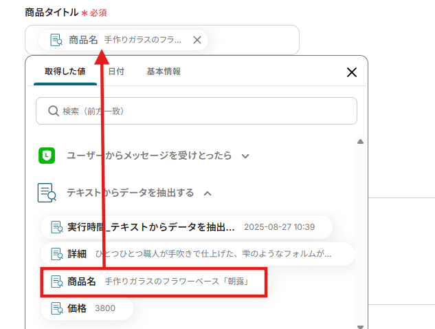 商品タイトルには抽出した内容から「商品名」を選択し、入力しましょう。