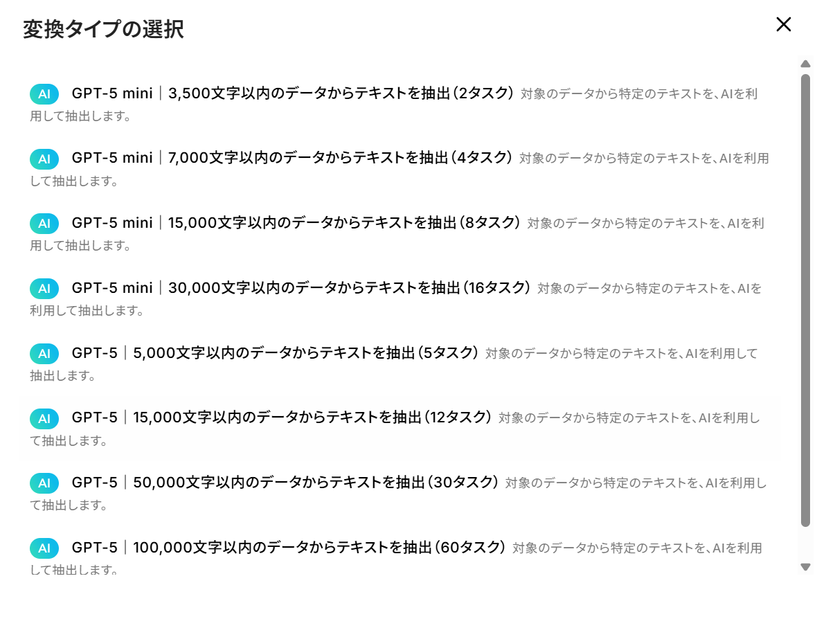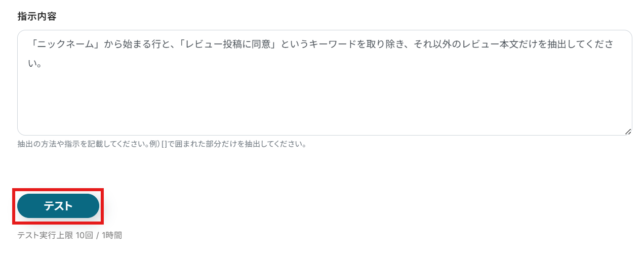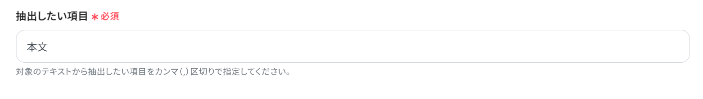 - AI機能のテキスト抽出では、受信したメッセージからどの部分を投稿内容として利用するか、任意の抽出項目を設定してください