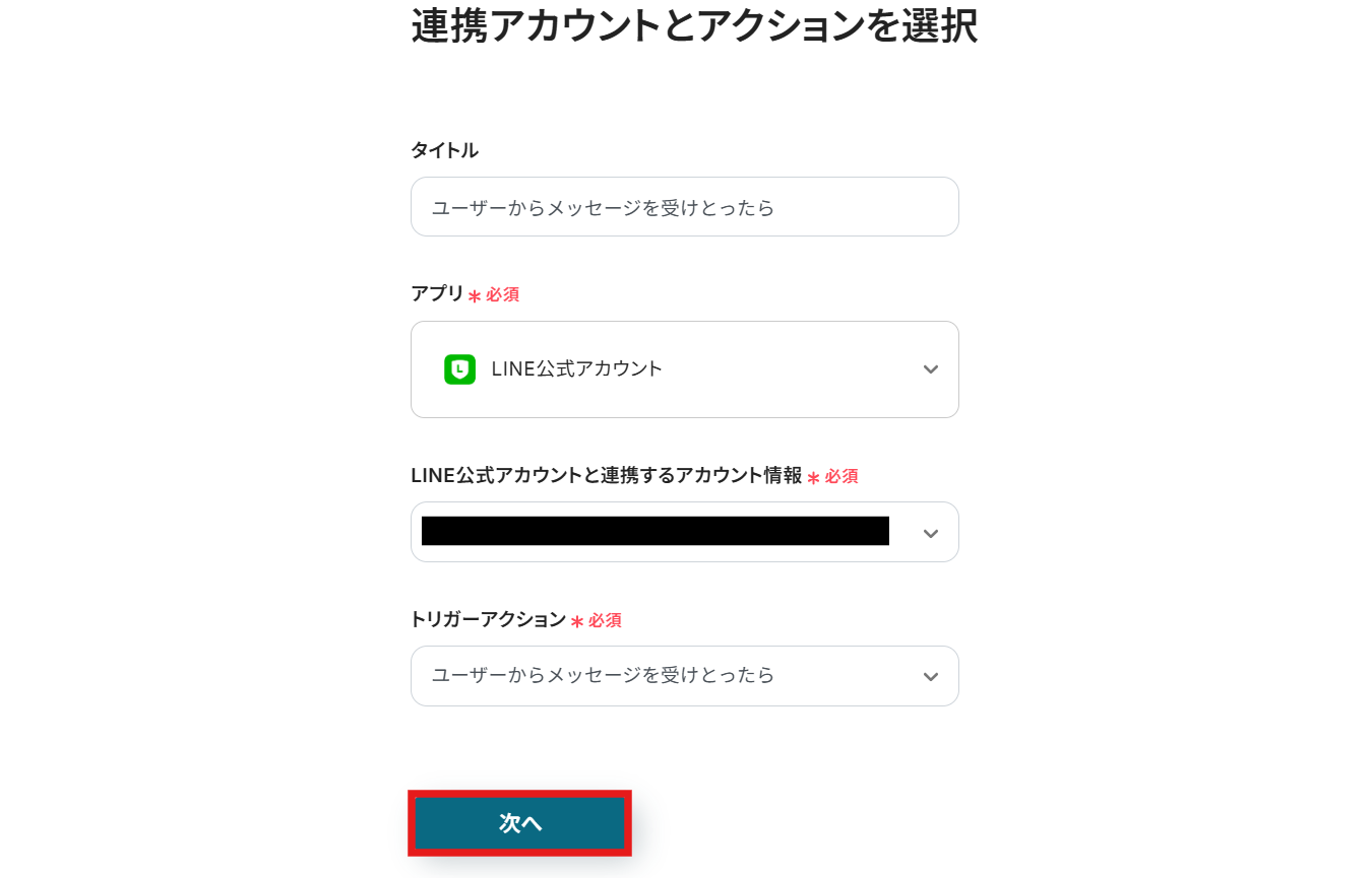 LINE公式アカウントと連携するアカウント情報はプルダウンから選択します。