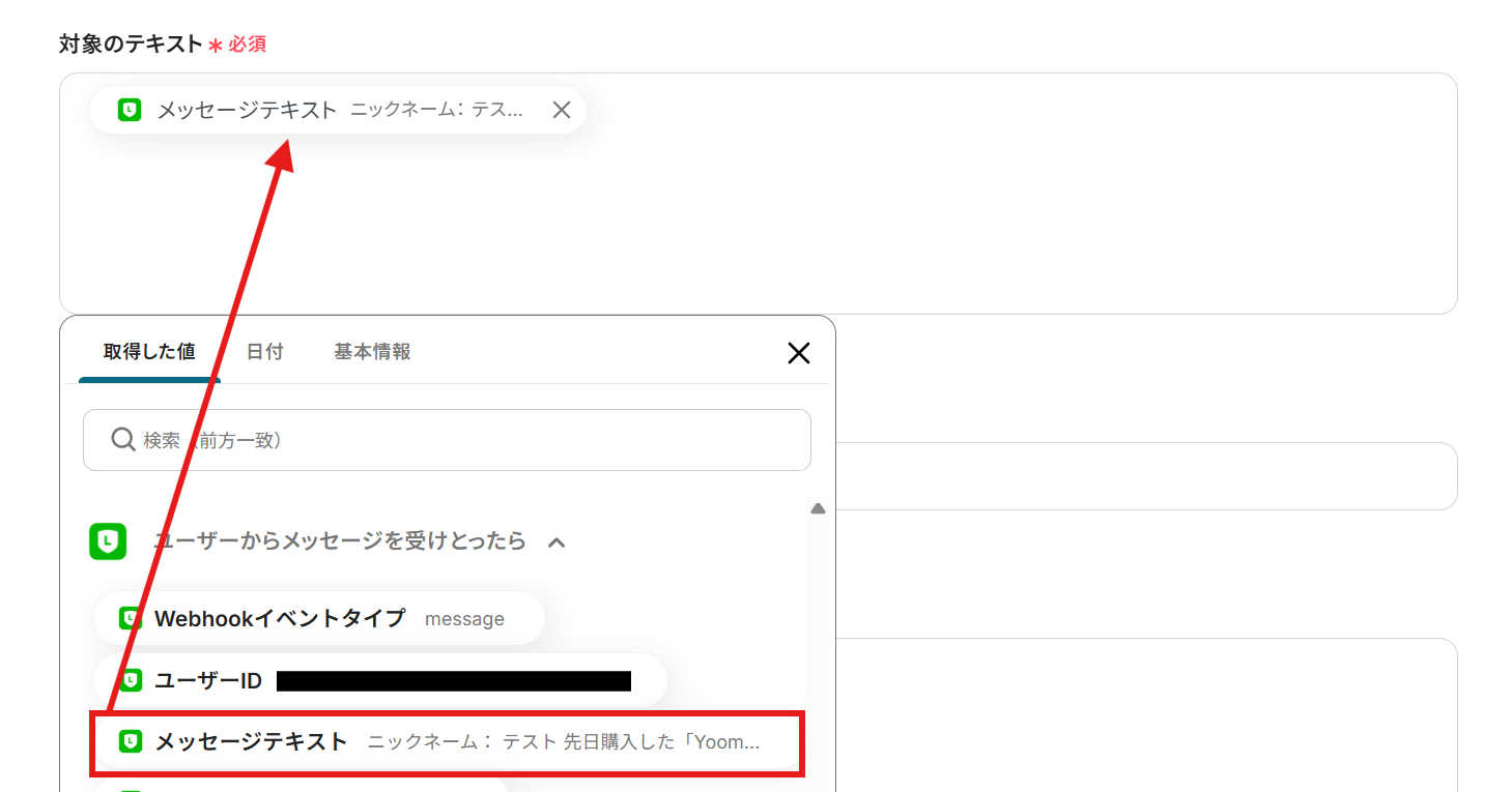 - LINE公式アカウントのオペレーションでは、プロフィール情報を取得する対象として、トリガーで検知したユーザーのIDを正しく設定してください。
