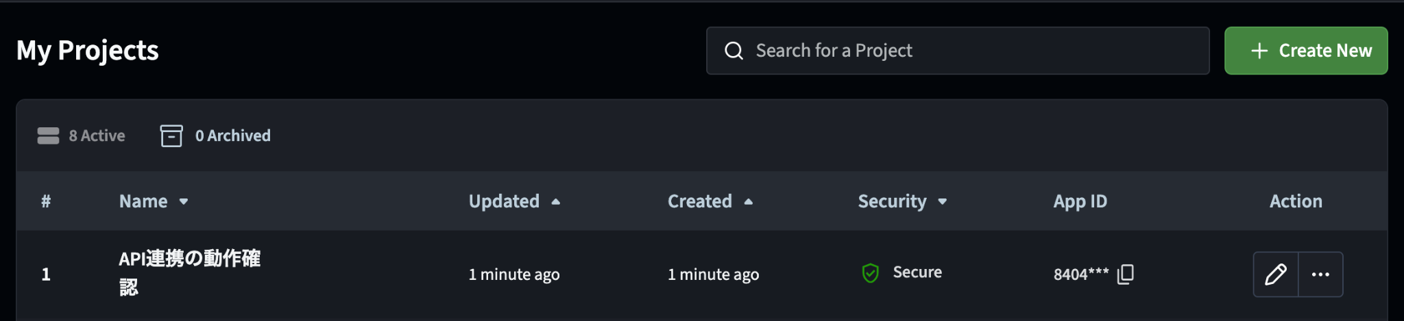 1.アプリと連携する「Create Project」をクリックしましょう。