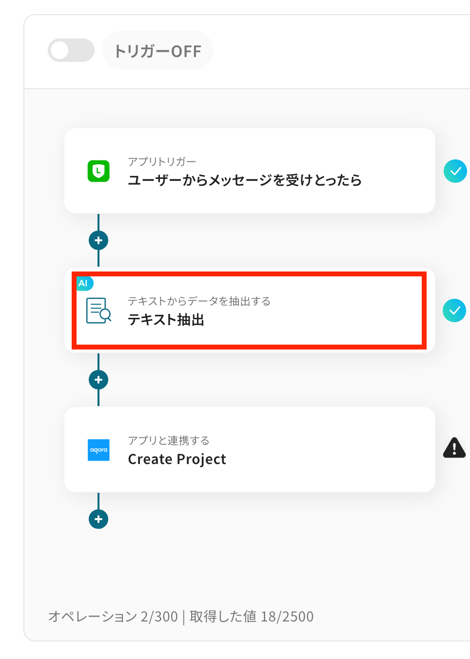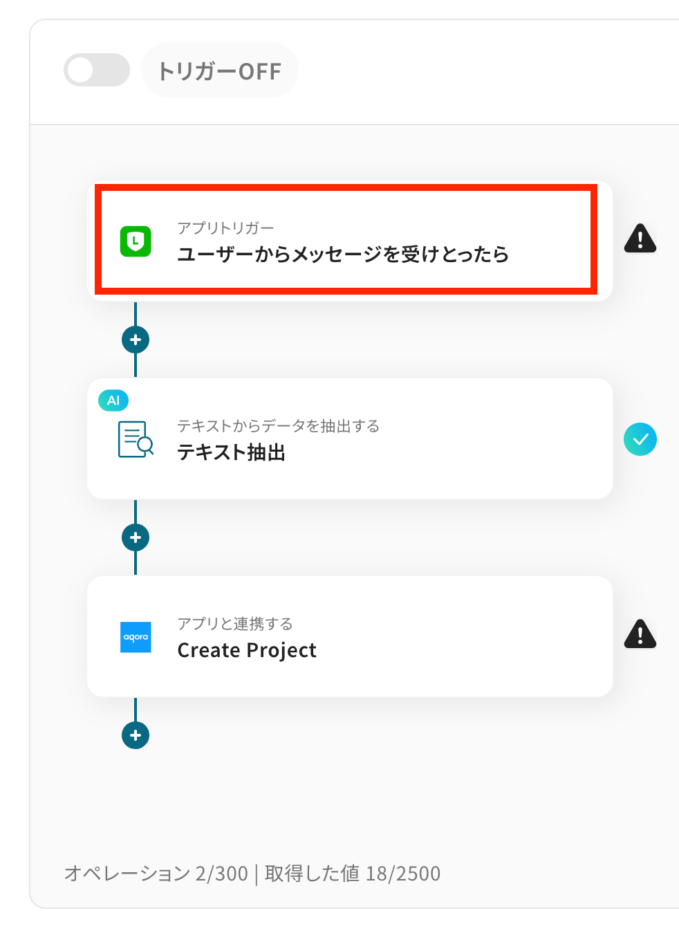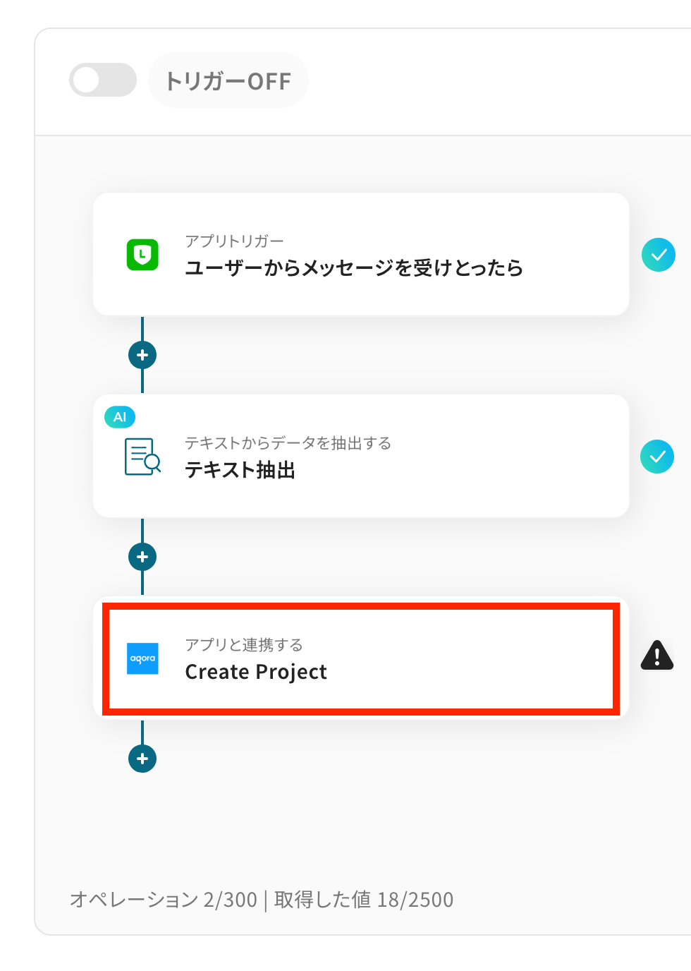 今回は「LINEでメッセージが送信されたら、AgoraにProjectを作成する」フローを作成していきます!
