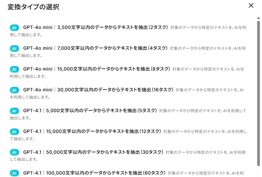 下記画面が表示されるので、任意の変換タイプを選択します。