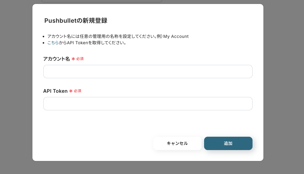 「アカウント名」「API Token」を入力して[追加]を押してください。
