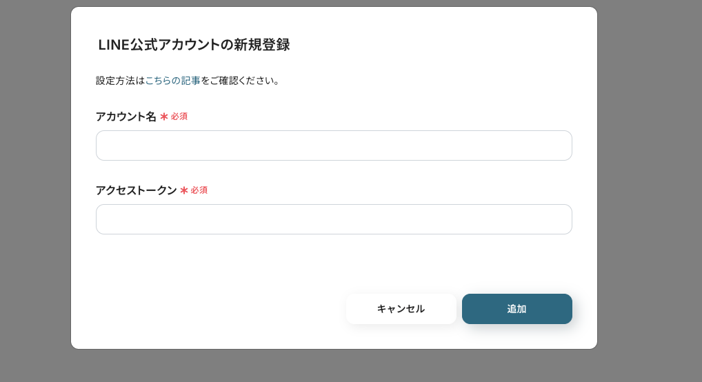 「アカウント名」「アクセストークン」を入力して[追加]を押してください。