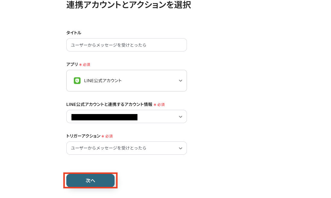 ステップ3:LINE公式アカウントのトリガーアクション設定