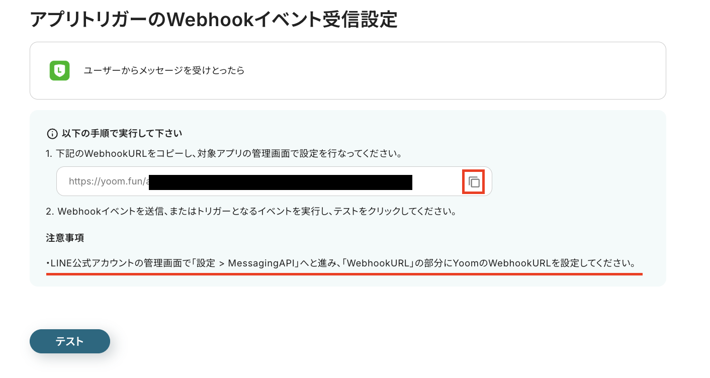 LINE公式アカウントのWebhookイベントの設定方法は、こちらのページも確認してください。