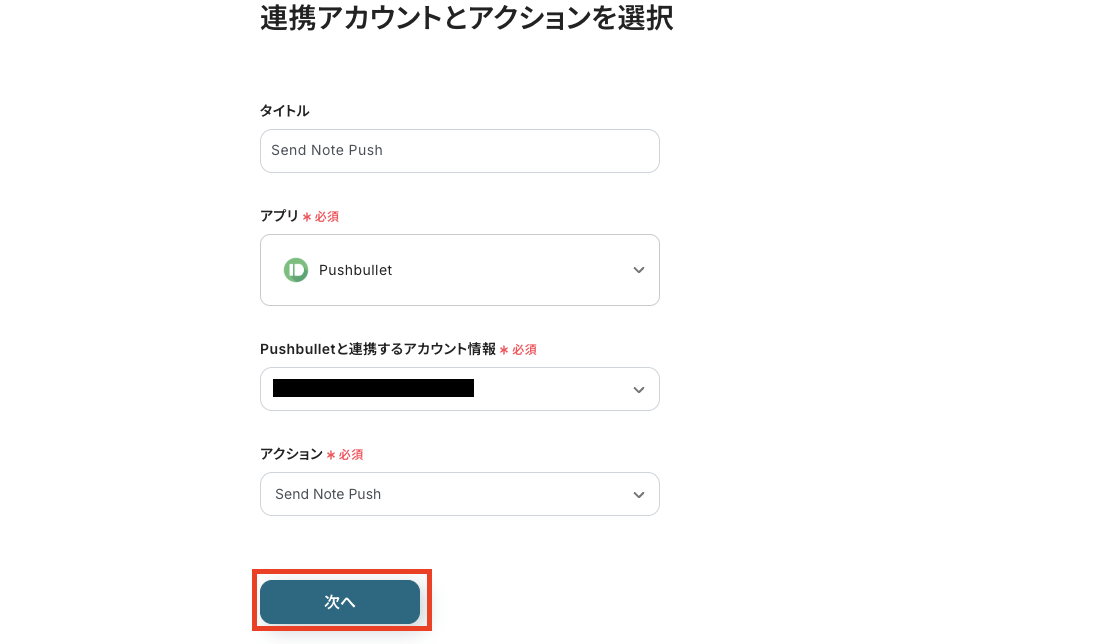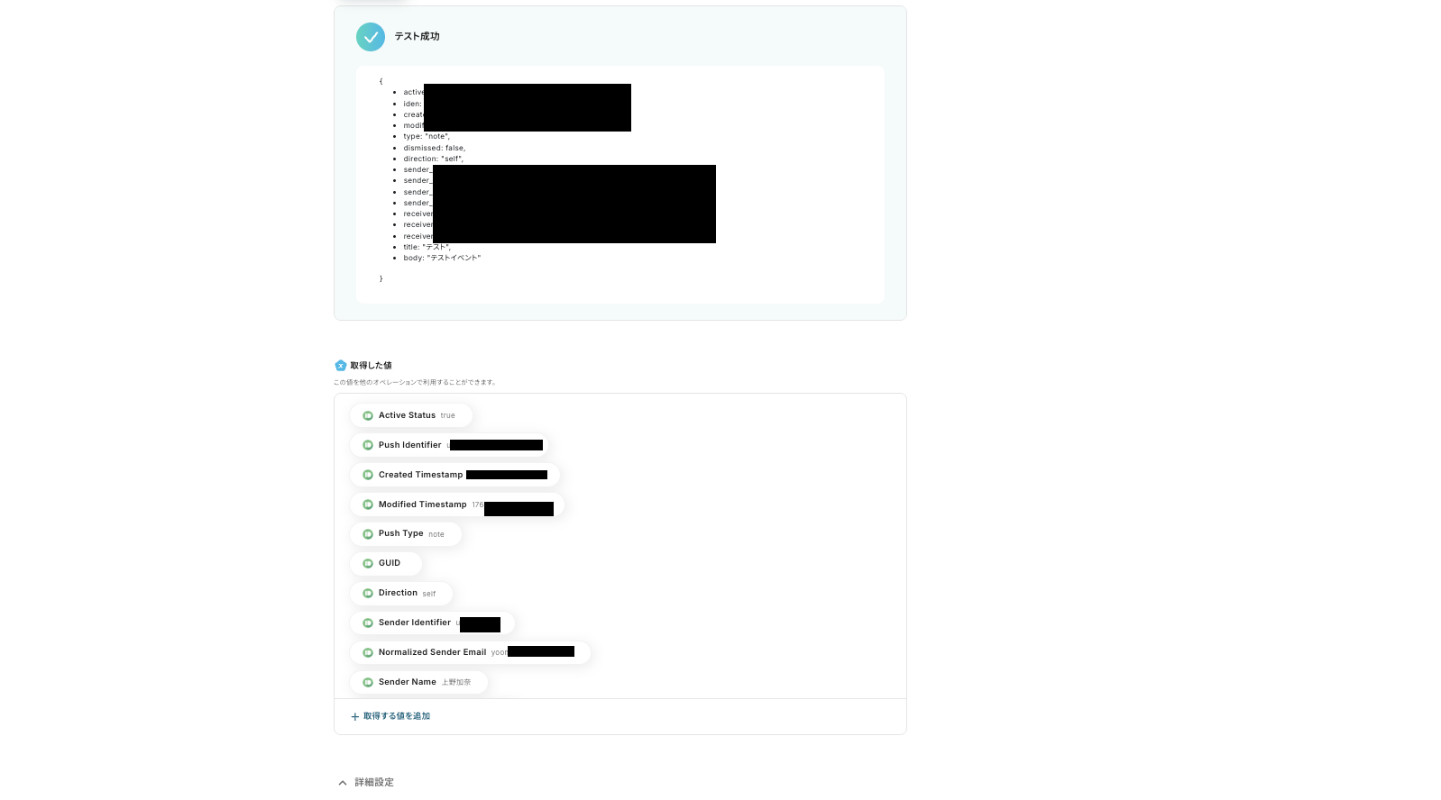 後続のアクションを設定する際に、変数として活用できるので、ここで得た情報をそのままPushbulletに反映できるようになります!
