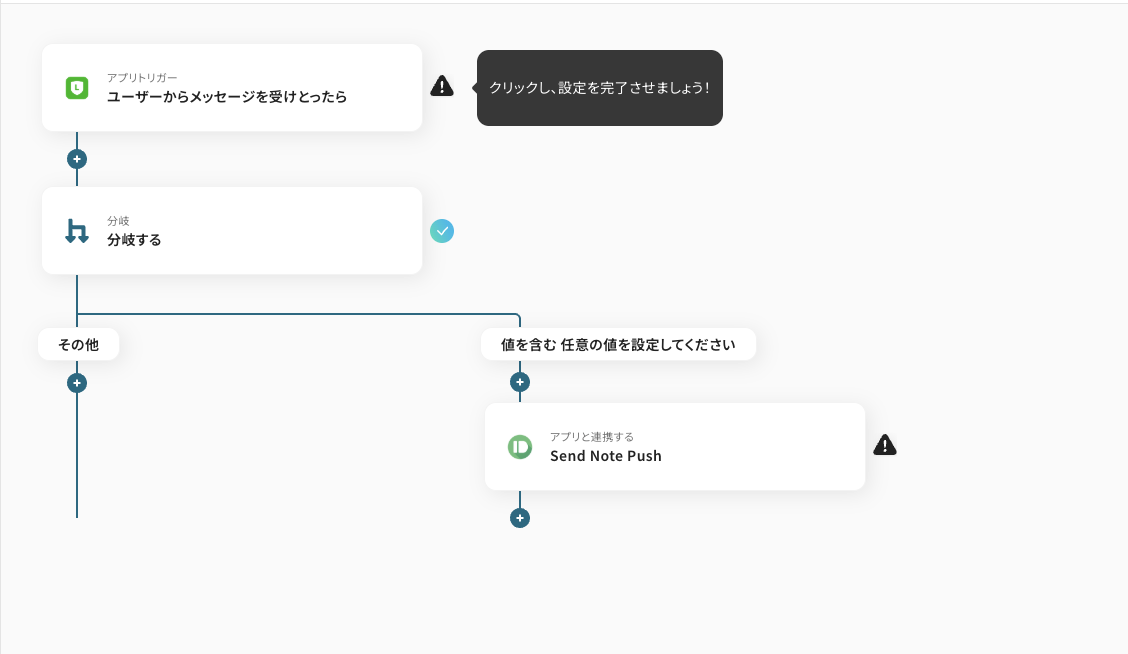 ※「分岐する」オペレーションは、ミニプラン以上でご利用いただけます。フリープランで利用するとエラーになってしまうのでご注意ください。