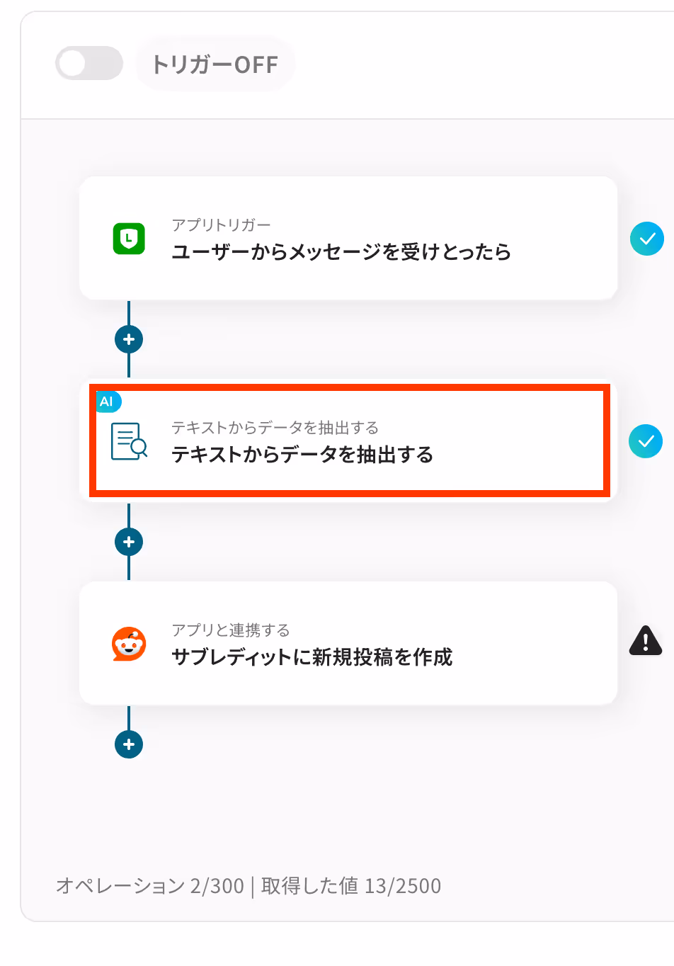 次に、メッセージからAIでテキストを抽出する設定を行います。