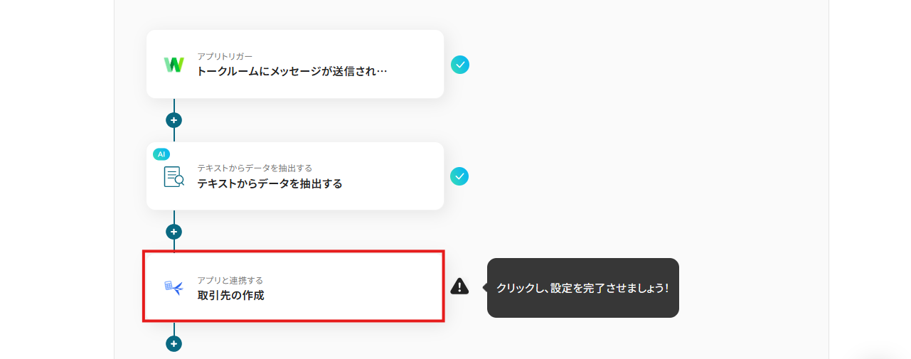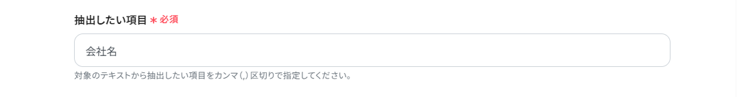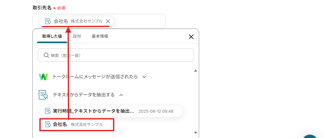 今回は、取引先をfreee会計に自動登録したいので、抽出したい項目には「会社名」を設定しています。