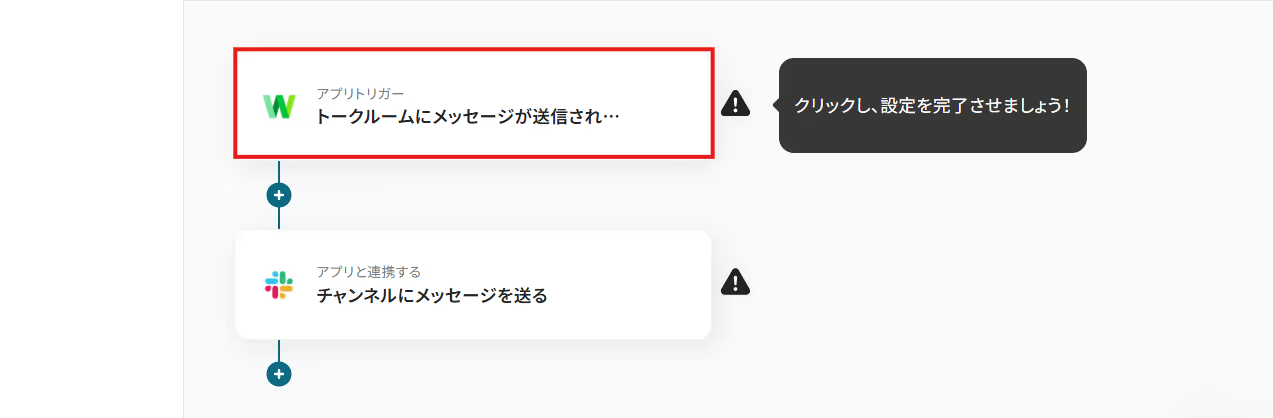 まずは、LINE WORKSアイコンの「トークルームにメッセージが送信されたら」をクリックし設定します。