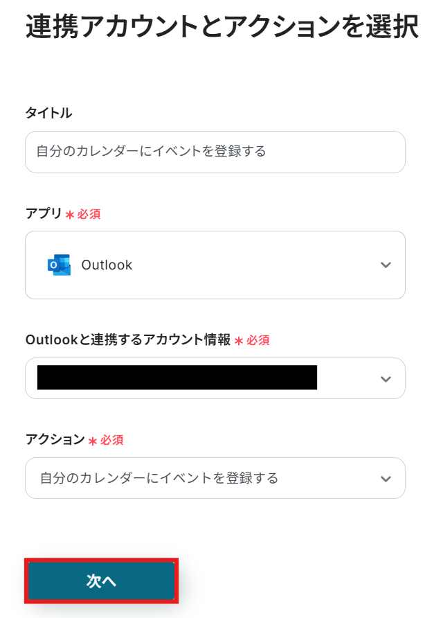 連携アカウントとアクションは、先ほどと同様に確認して次へ進んでください。