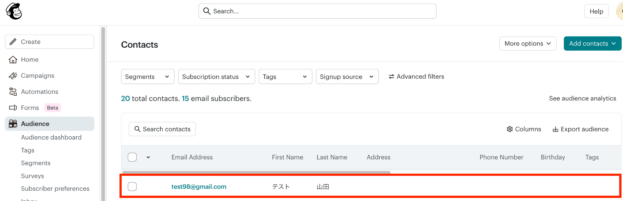Freshdeskで特定条件のコンタクトが作成されたら、Mailchimpでコンタクトをオーディエンスに追加する