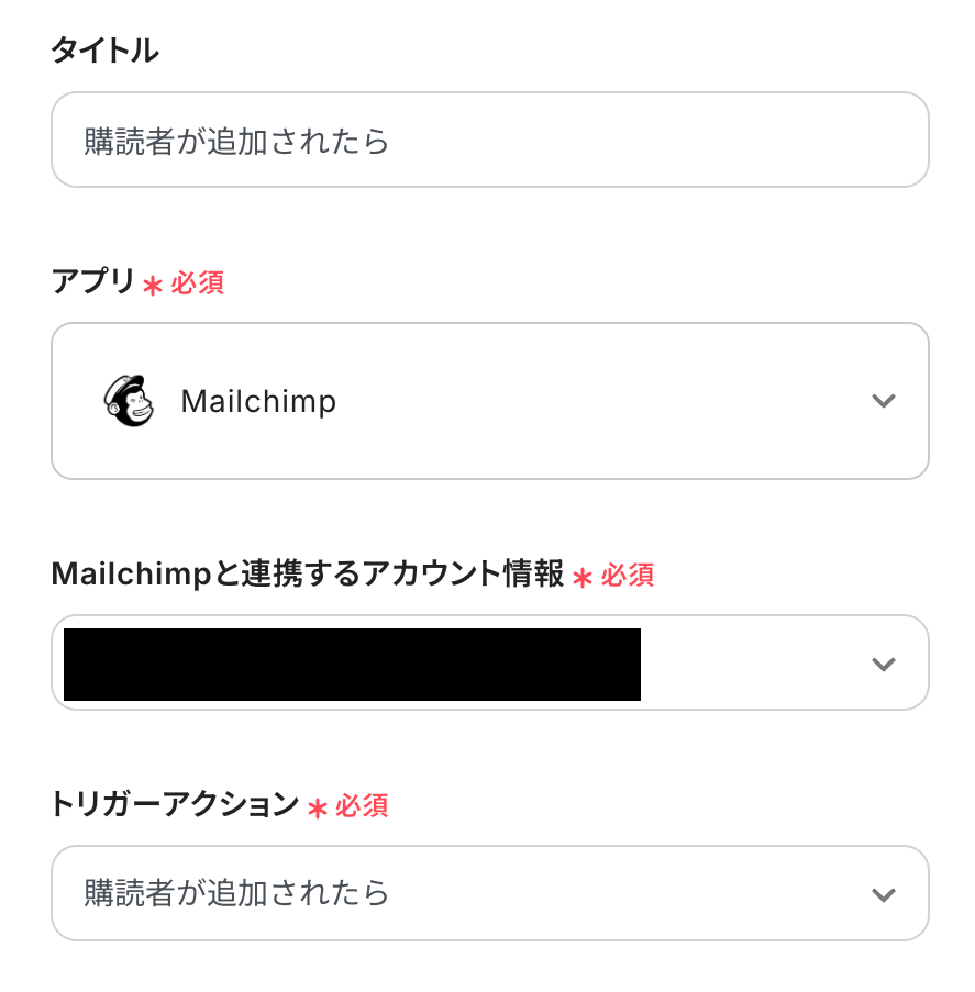 「トリガーアクション」:デフォルトで「購読者が追加されたら」が選択されているので、そのままでOKです!