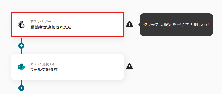 今回は「Mailchimpで購読者が追加されたら、Microsoft SharePointでフォルダを作成する」フローを作成していきます! 作成の流れは大きく分けて以下です。