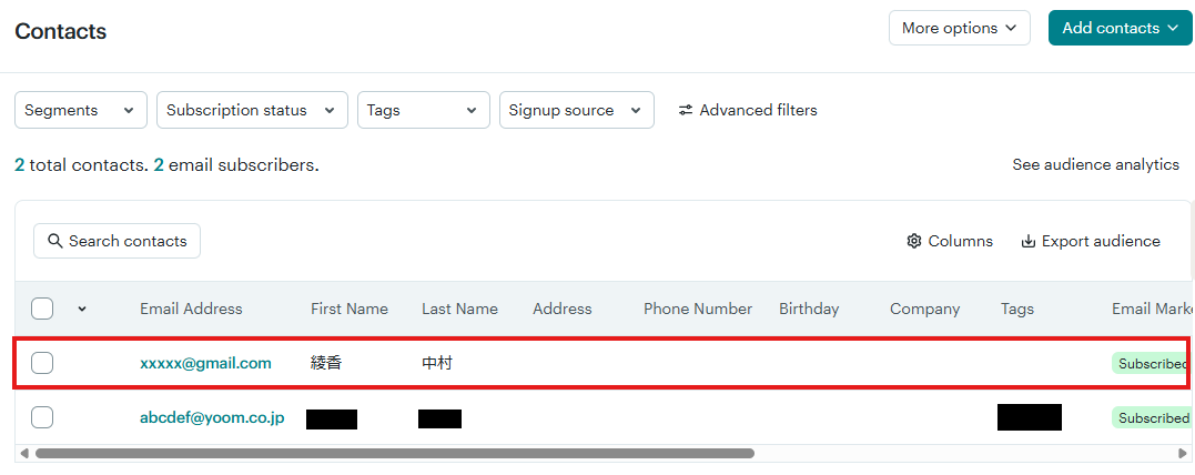 3. 次のテストのためにMailchimpに購読者を追加します