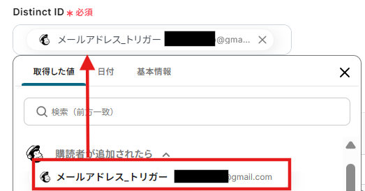 5.「Distinct ID」は、先ほどの取得した値から選択できます。