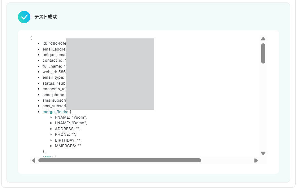 A:Mailchimpの「氏名」「住所」「電話番号」「メールアドレス」「カスタムフィールド」など、購読者に関連する情報を連携できます!