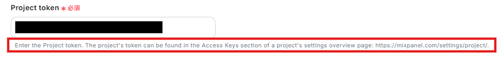 4.「Project token」は、Mixpanelの管理画面から「Project Token」を引用しましょう。