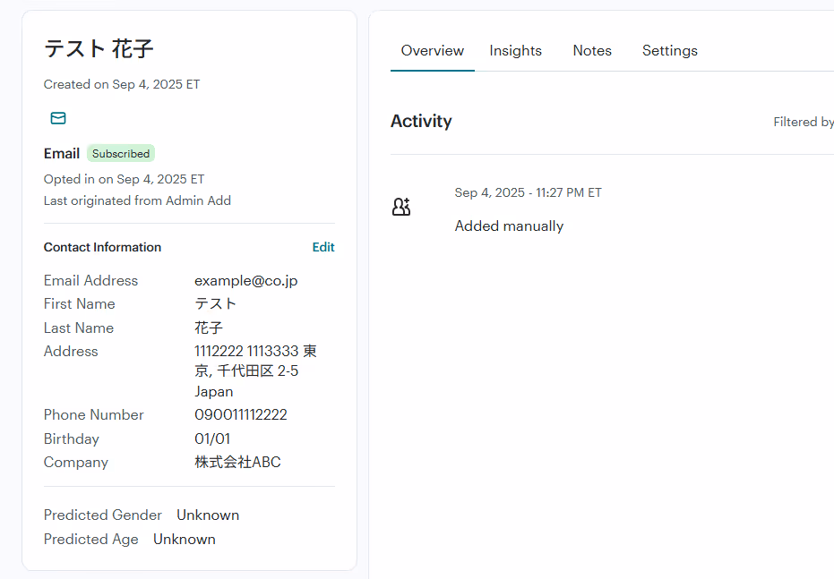 フローの作成を始める前に、あらかじめYoomと連携するMailchimpに、購読者を追加しておきましょう!