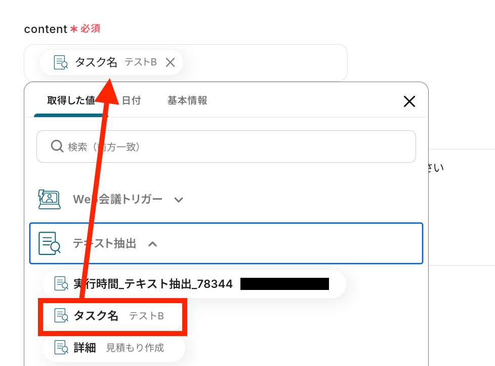 取得した値の中から、抽出したい対象のテキストを選択します。